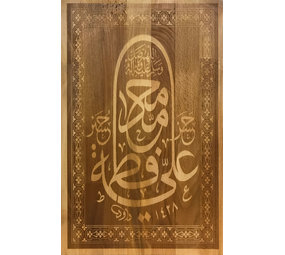 Islamic Calligraphic Art On Wood With Five Namens Of Ahlul Bayt Nanogram